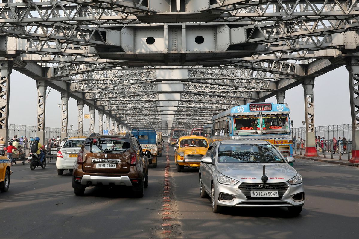 A general view shows vehicles crossing Howrah bridge in Kolkata, India, February 26, 2022. REUTERS/Rupak De Chowdhuri