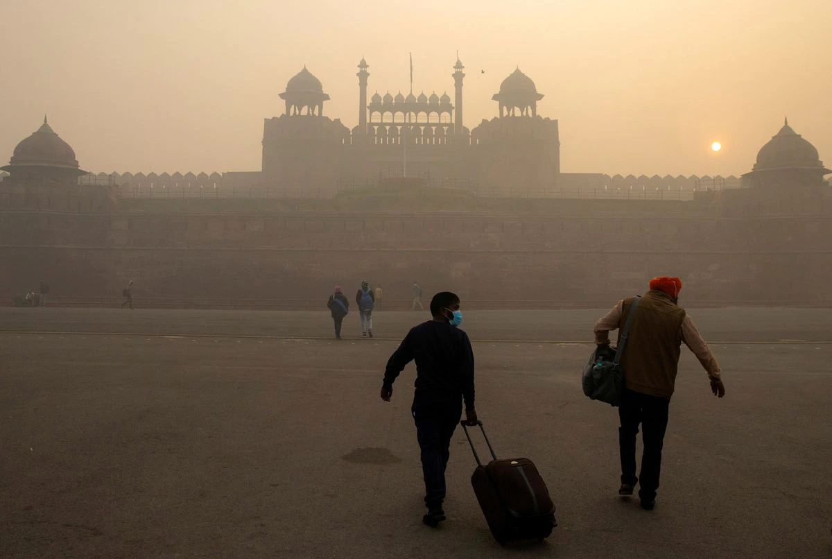 People arrive to visit the Red Fort on a smoggy morning in the old quarters of Delhi, India, November 10, 2020. REUTERS/Danish Siddiqui//File Photo