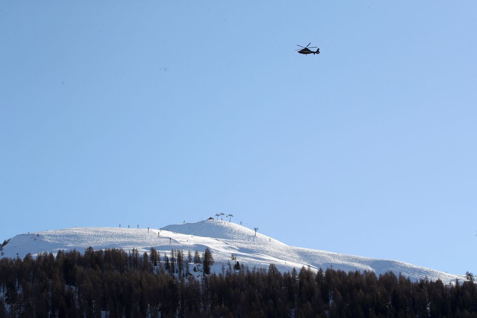 A helicopter flies over the ski resort during the 50th World Economic Forum (WEF) annual meeting in Davos, Switzerland, January 23, 2020. REUTERS/Denis Balibouse