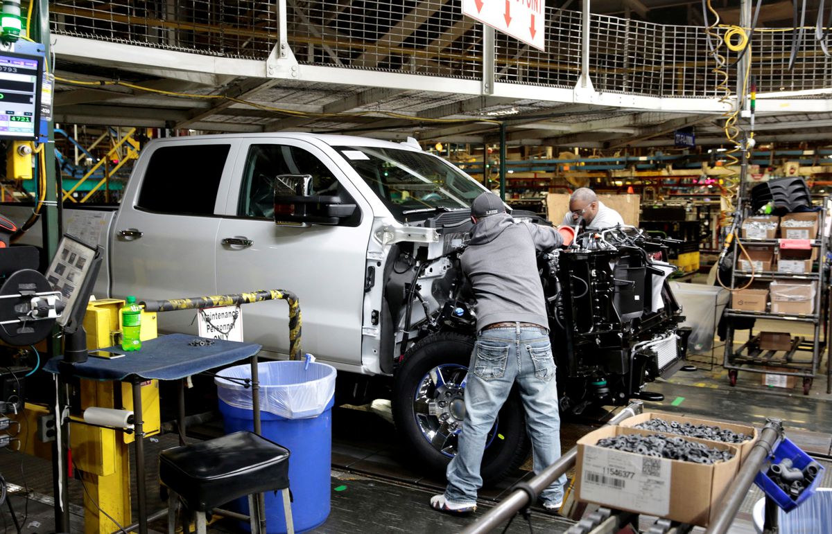 General Motors assembly workers work on Chevrolet 2019 heavy-duty pickup trucks at the General Motors Flint Assembly Plant in Flint, Michigan, U.S. February 5, 2019. REUTERS/Rebecca Cook/File Photo