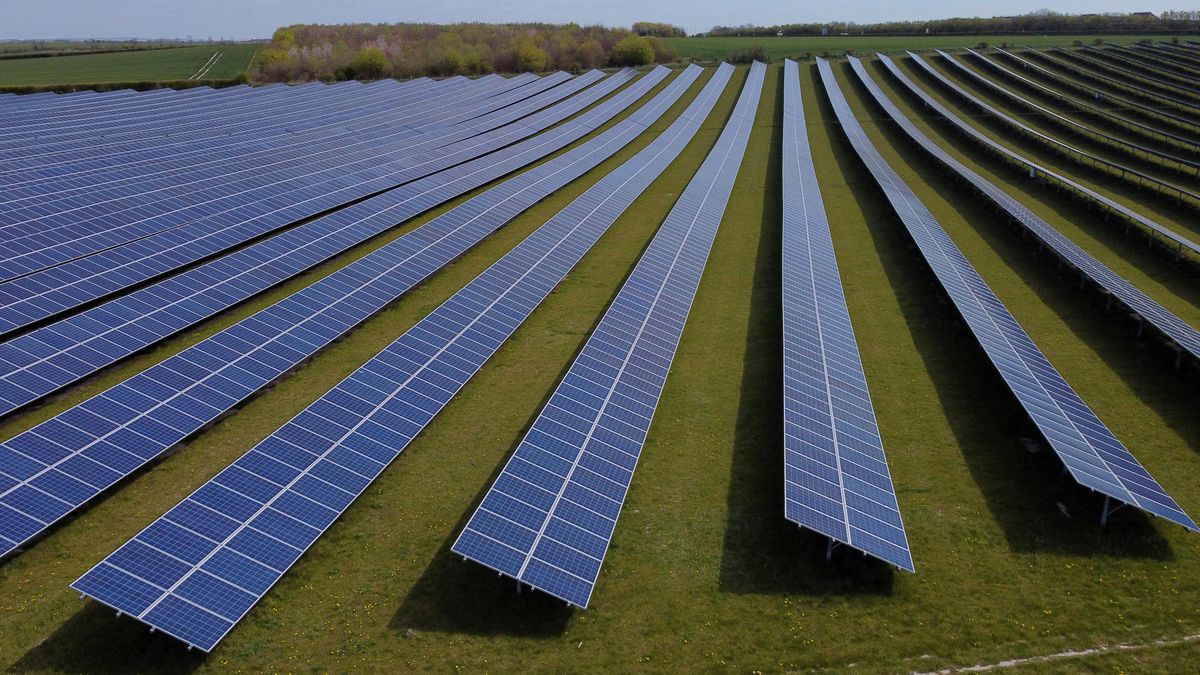 A field of solar panels is seen near Royston, Britain, April 26, 2021. REUTERS/Matthew Childs/File Photo