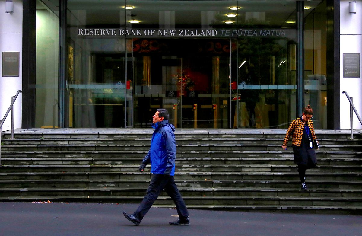 Pedestrians walk near the main entrance to the Reserve Bank of New Zealand located in central Wellington, New Zealand, July 3, 2017. REUTERS/David Gray/File Photo