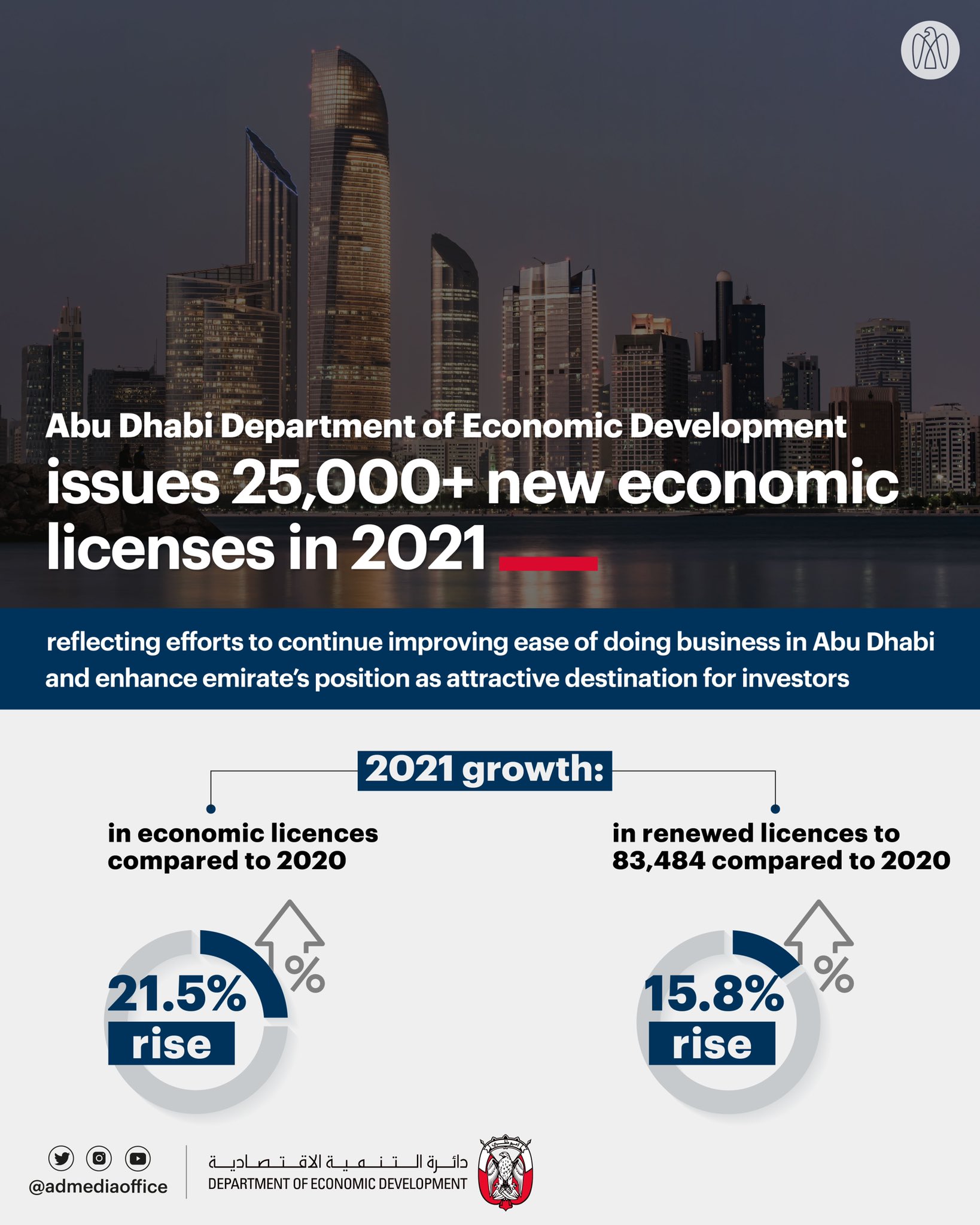 Abu Dhabi has witnessed the issuance of 25,427 new licenses, an increase of 21.5% compared with 20,925 licences issued in 2021, a report published by the Abu Dhabi Business Center at the Abu Dhabi Department of Economic Development (ADDED) said.