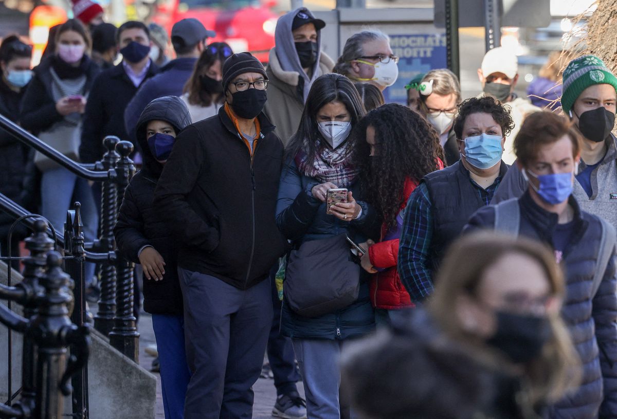 People wait in long lines to be tested for COVID-19 in Washington, U.S., December 20, 2021. REUTERS/Evelyn Hockstein