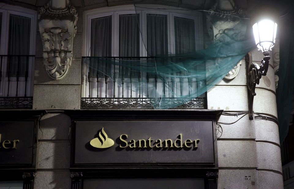 FILE PHOTO:A Santander logo can be seen on a branch in central Madrid, Spain, January 26, 2016. REUTERS/Andrea Comas