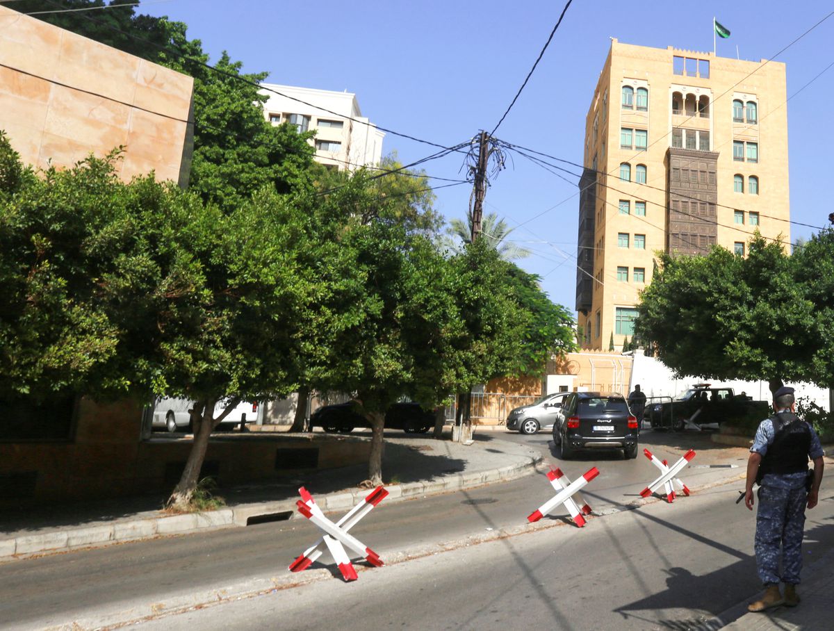 A Saudi flag flutters atop the Saudi Arabia's embassy in Beirut, Lebanon October 30, 2021. REUTERS/Aziz Taher