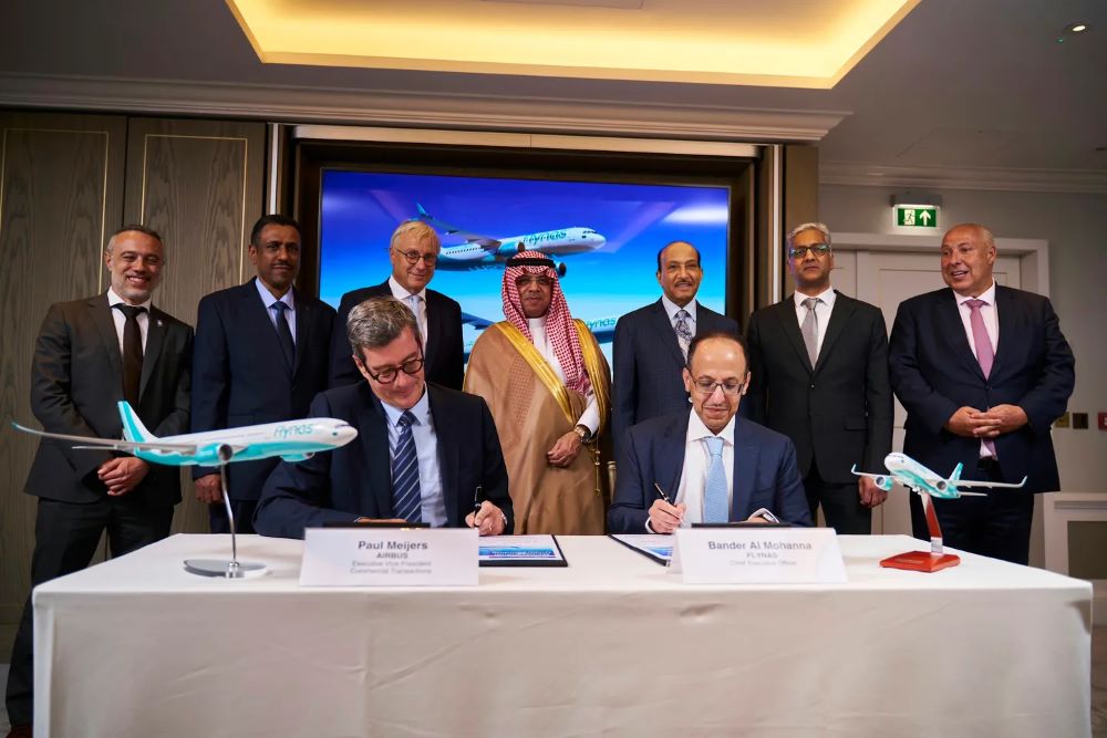 Signed during Farnborough International Airshow in the presence of President of the General Authority of Civil Aviation (GACA) of Saudi Arabia Abdulaziz bin Abdullah Al-Duailej, Chairman of the Board of NAS Holding Ayed Al Jeaid, flynas CEO & Managing Director Bandar Almohanna, and Airbus CEO for Commercial Aircraft Christian Scherer.