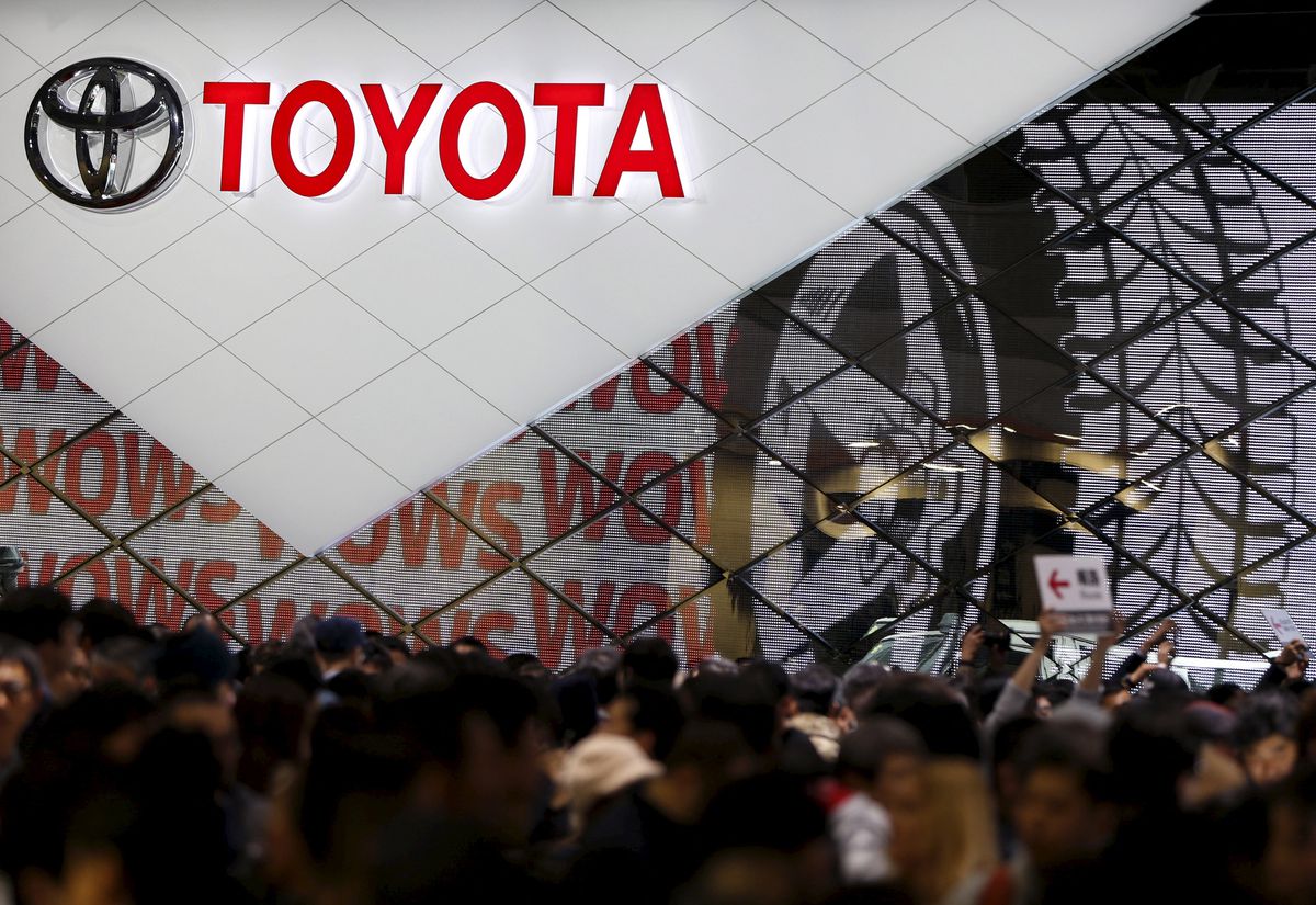 Visitors crowd Toyota Motor Corp's booth at the 44th Tokyo Motor Show in Tokyo, Japan, November 2, 2015. REUTERS/Issei Kato