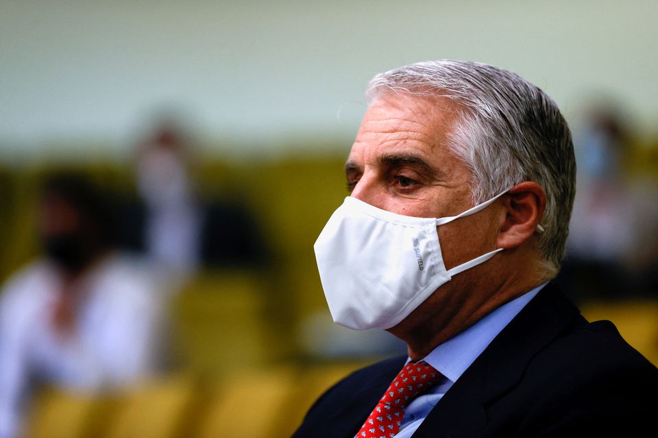 Italian banker Andrea Orcel attends a trial against Santander over the bank's withdrawal of a CEO job offer to him, in a high court in Madrid, Spain, May 19, 2021. REUTERS/Juan Medina/File Photo